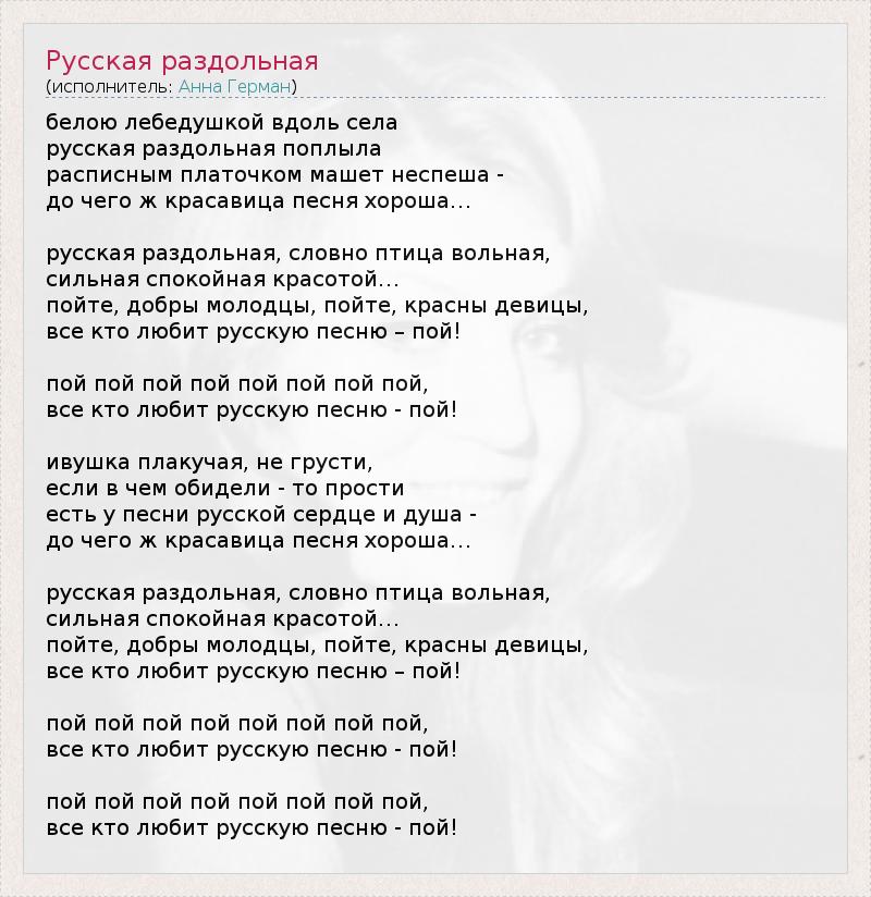ГлавнаяИсполнителиАнна ГерманРусская раздольная