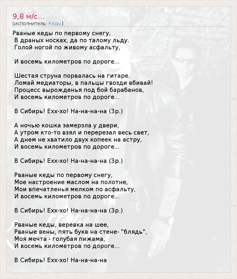 А как ты думаешь, о чем песня "9,8 м/с..." ?