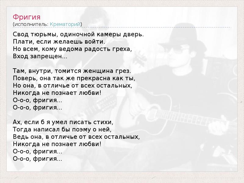 Это интересно:Группа образована в 1983 году Арменом Григоряном и его сокурсником Виктором Троегубовым.«Крематорий» поначалу выступает на квартирах и быстро набирает популярность в рок-кругах столицы, а после выхода альбома «Иллюзорный мир» (1985) приходит известность на всесоюзном уровне. Группу начинают приглашать на концерты в другие города. Однако в «Крематории» начинается разлад между двумя... продолжение
