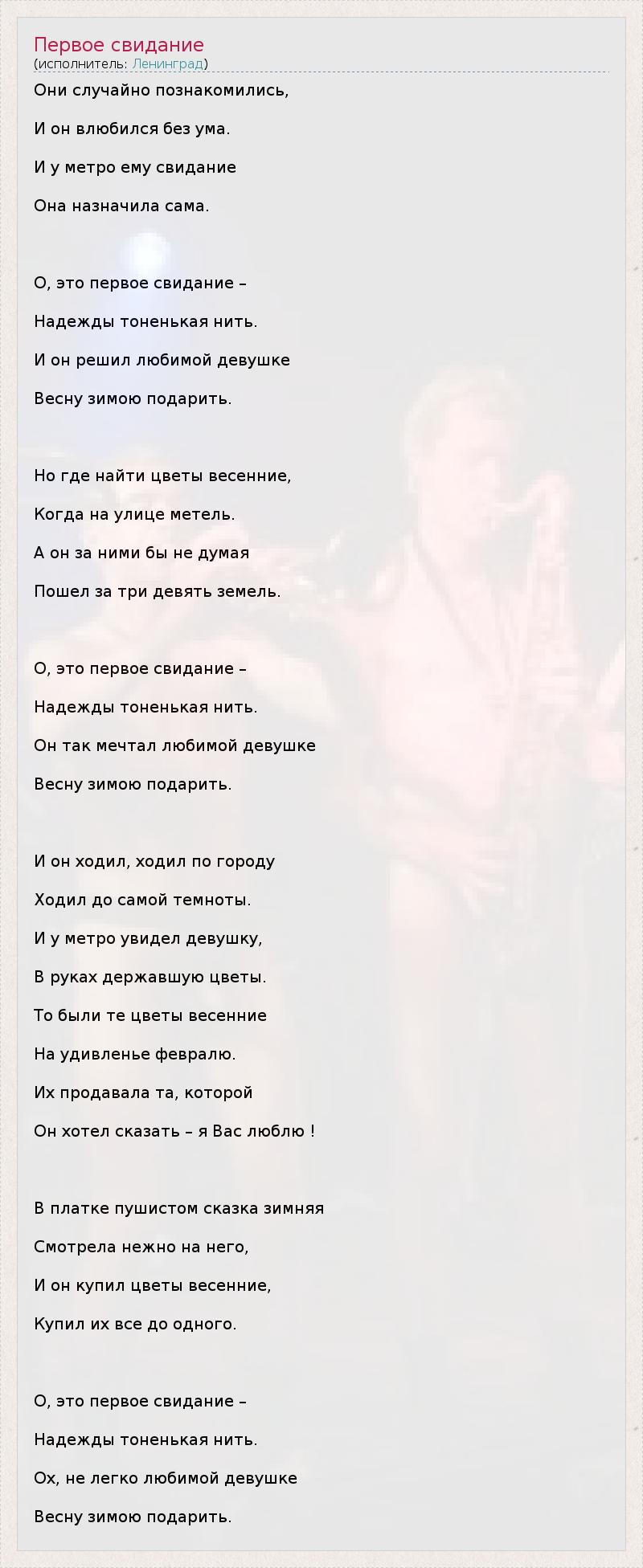 ГлавнаяИсполнителиЛенинградПервое свидание