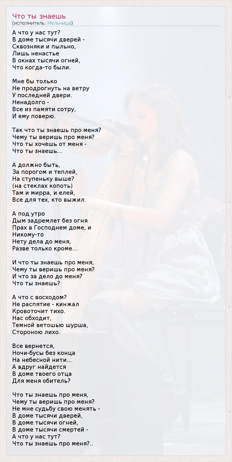 А как ты думаешь, о чем песня "Что ты знаешь" ?