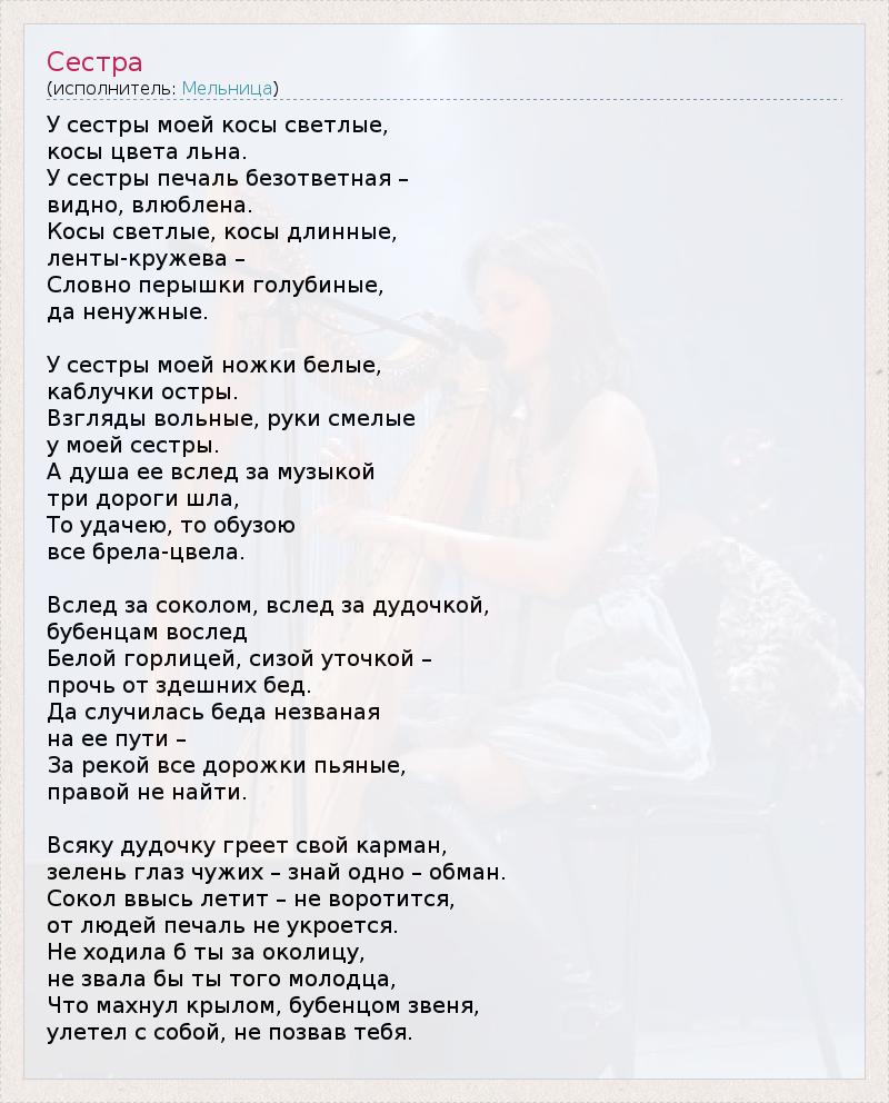 А как ты думаешь, о чем песня "Сестра" ?