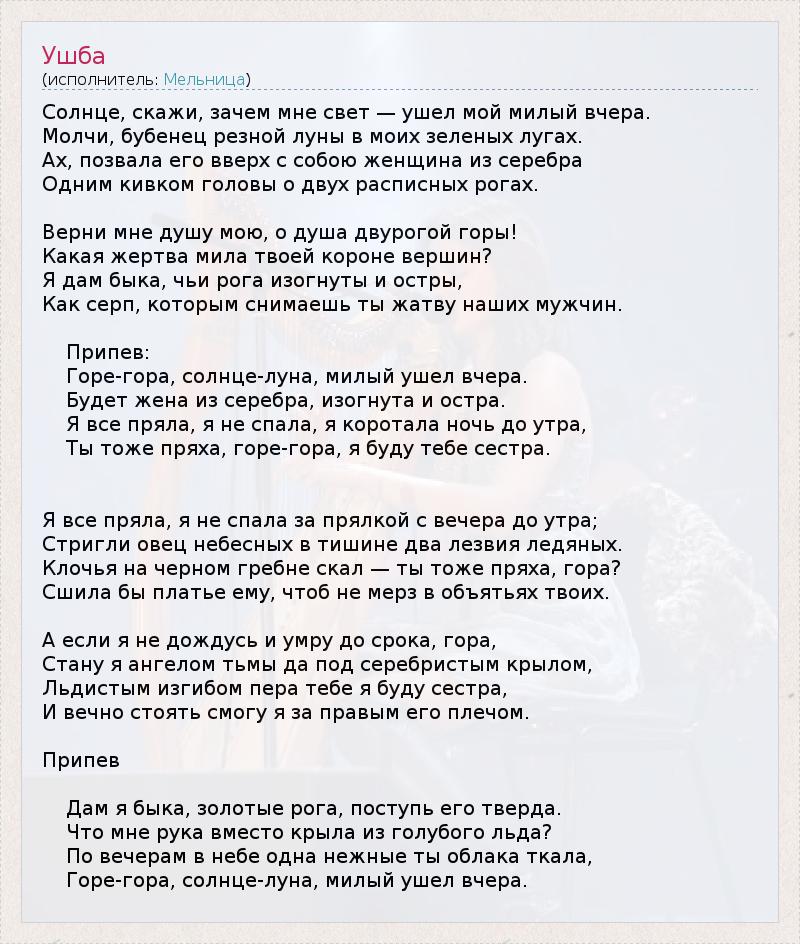Горе-гора, солнце-луна, милый ушел вчера.