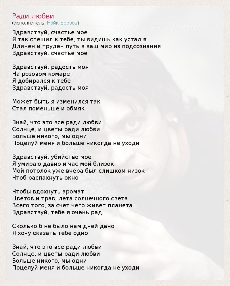 А как ты думаешь, о чем песня "Ради любви" ?