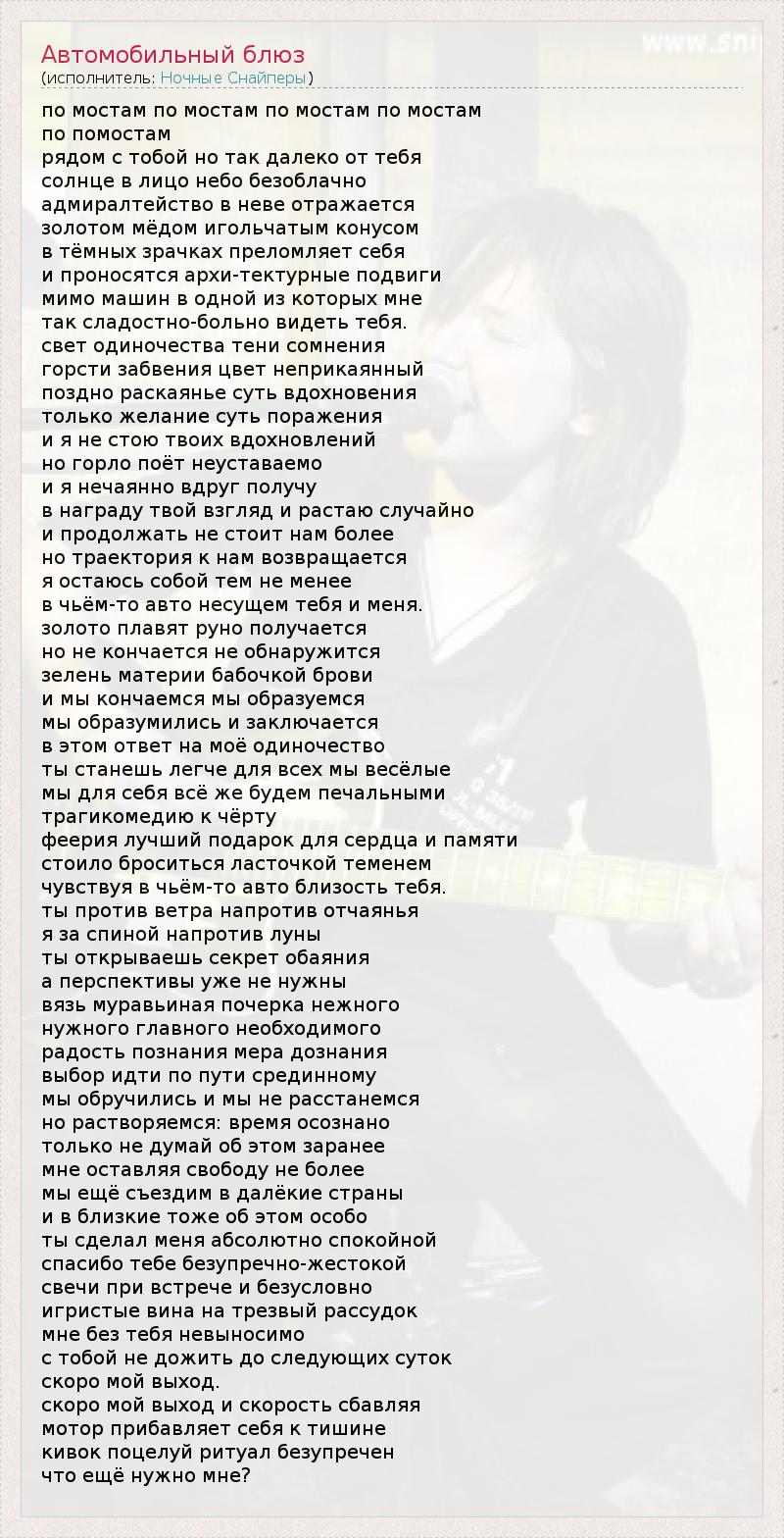 ГлавнаяИсполнителиНочные СнайперыАвтомобильный блюз