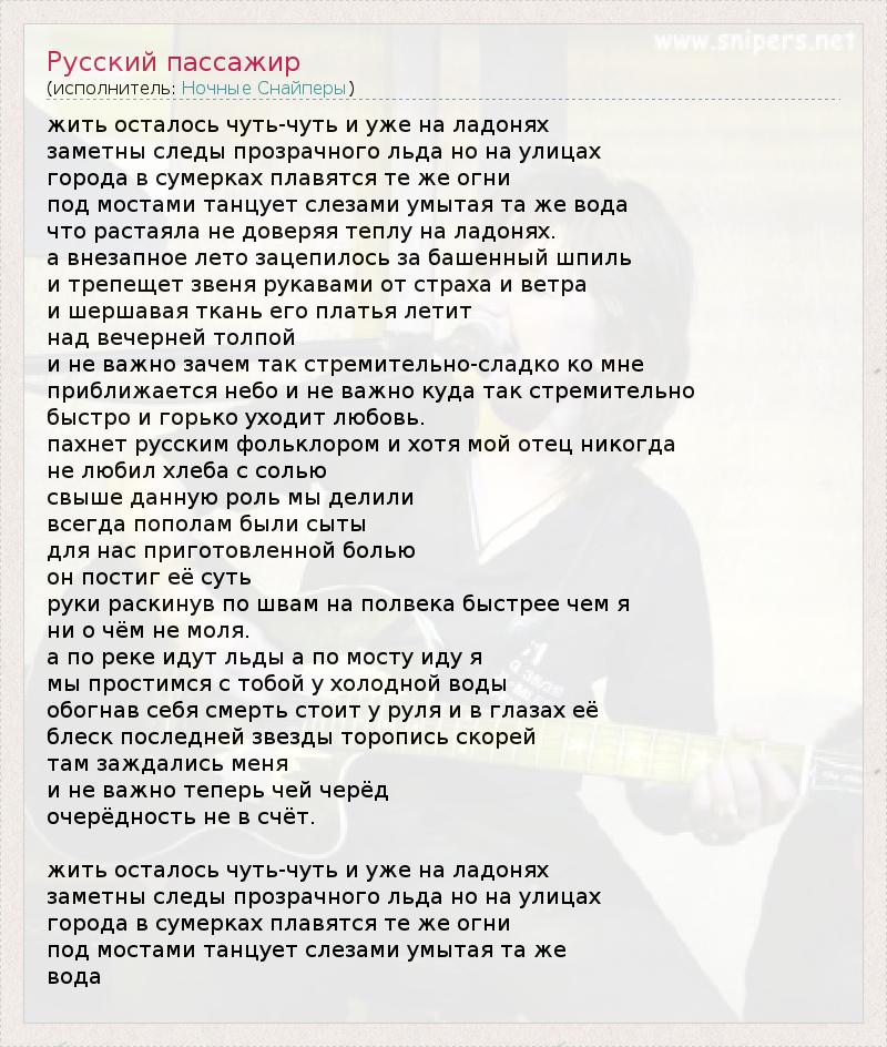 А как ты думаешь, о чем песня "Русский пассажир" ?
