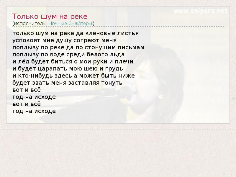 А как ты думаешь, о чем песня "Только шум на реке" ?