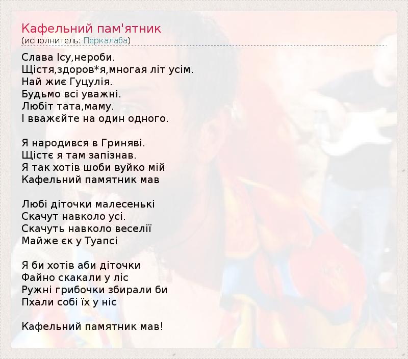 А как ты думаешь, о чем песня "Кафельний пам'ятник" ?
