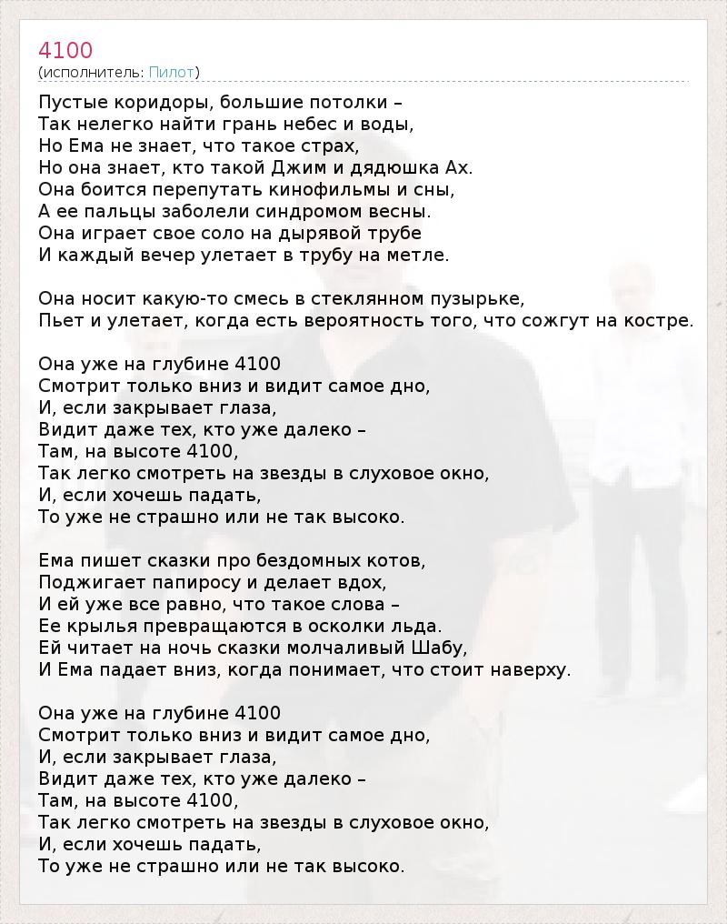 Это интересно:Группа "Пилот" образовалась 11 января 1997 года в первоначальном составе: Илья Чёрт (вокал), Ромка Чуйков (гитара), Стасики Маркофф (бас), Витя Кузьмичёв (барабаны) плюс комсостав в лице директора Карпенкова Валерия Константиновича. На дне рождения группы, который проходил в концертном зале Полигон, играли приглашенные дружественные коллективы... продолжение