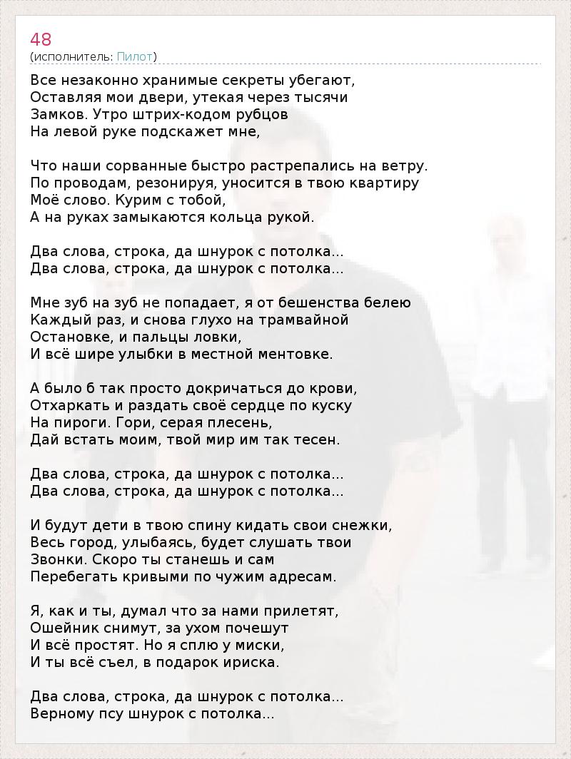 Это интересно:Группа "Пилот" образовалась 11 января 1997 года в первоначальном составе: Илья Чёрт (вокал), Ромка Чуйков (гитара), Стасики Маркофф (бас), Витя Кузьмичёв (барабаны) плюс комсостав в лице директора Карпенкова Валерия Константиновича. На дне рождения группы, который проходил в концертном зале Полигон, играли приглашенные дружественные коллективы... продолжение