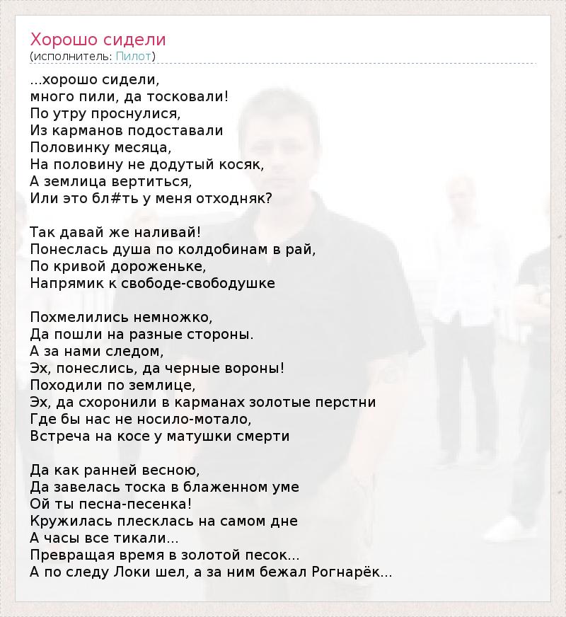 А как ты думаешь, о чем песня "Хорошо сидели" ?
