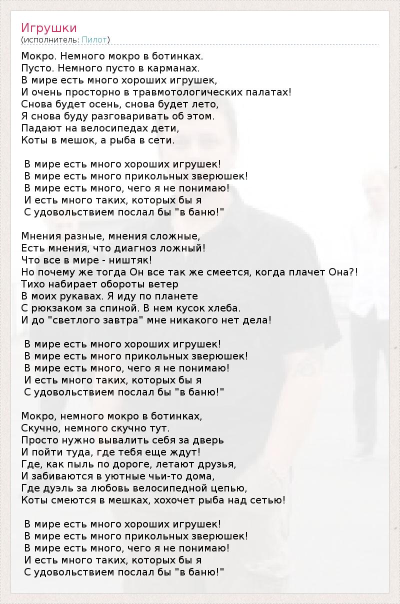 Это интересно:Группа "Пилот" образовалась 11 января 1997 года в первоначальном составе: Илья Чёрт (вокал), Ромка Чуйков (гитара), Стасики Маркофф (бас), Витя Кузьмичёв (барабаны) плюс комсостав в лице директора Карпенкова Валерия Константиновича. На дне рождения группы, который проходил в концертном зале Полигон, играли приглашенные дружественные коллективы... продолжение