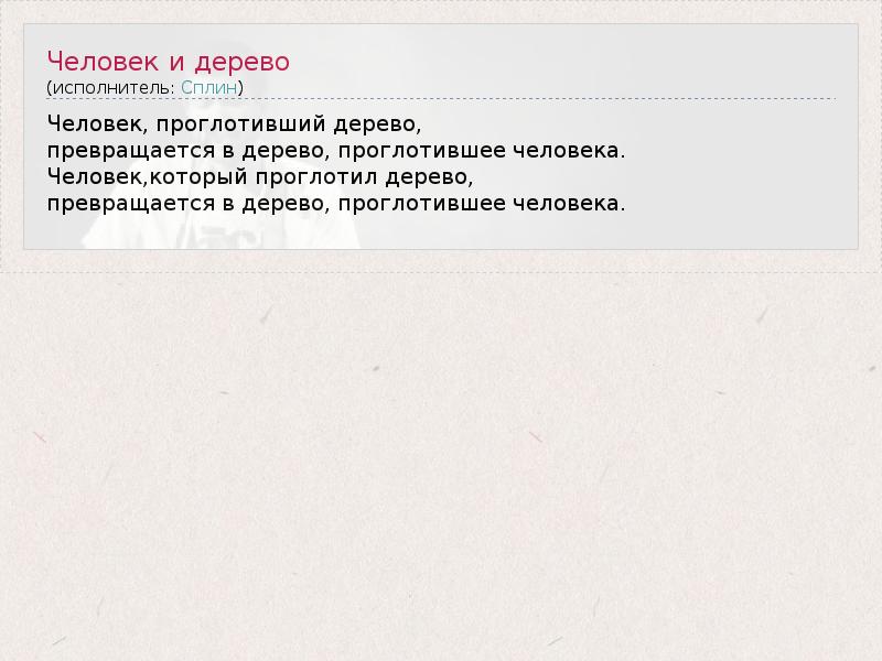 ГлавнаяИсполнителиСплинЧеловек и дерево