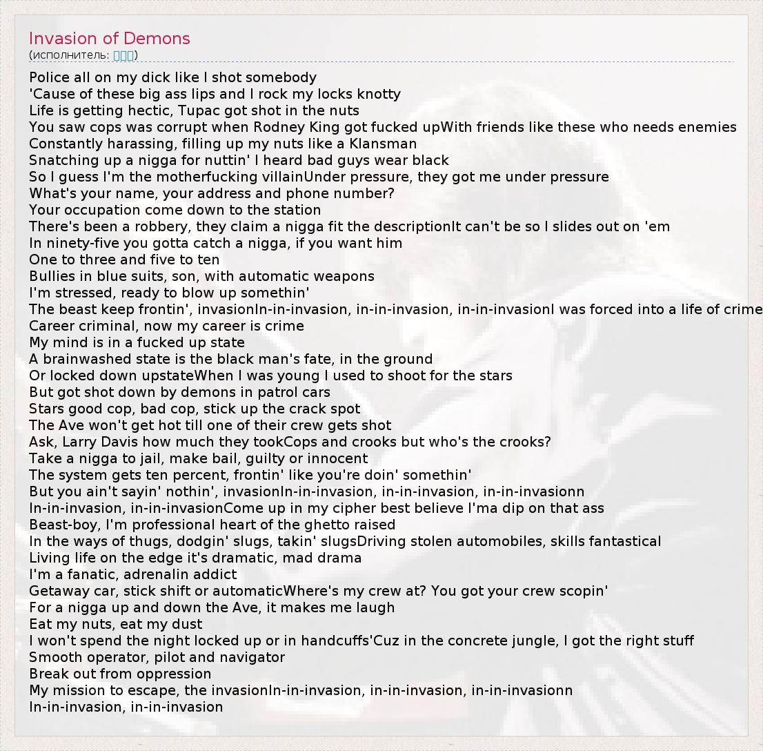 А как ты думаешь, о чем песня "Invasion of Demons" ?