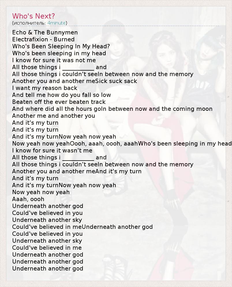 А как ты думаешь, о чем песня "Who's Next?" ?