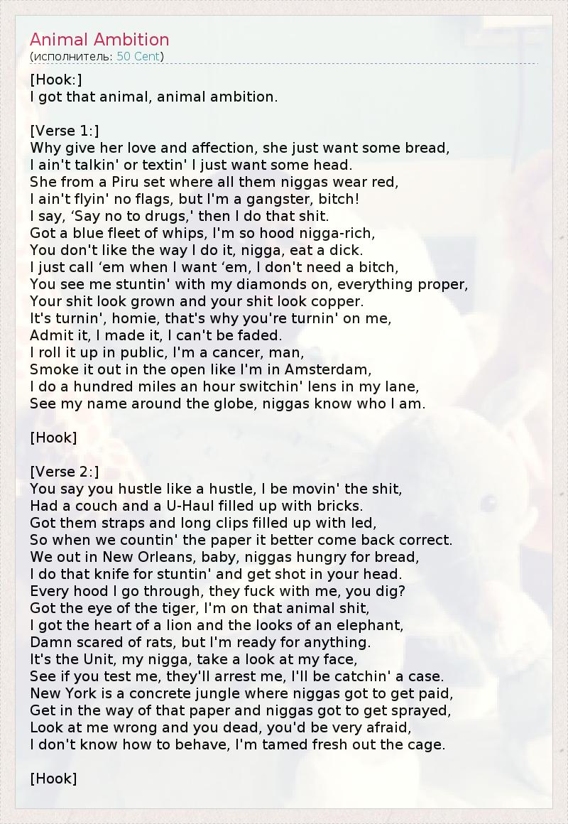 А как ты думаешь, о чем песня "Animal Ambition" ?