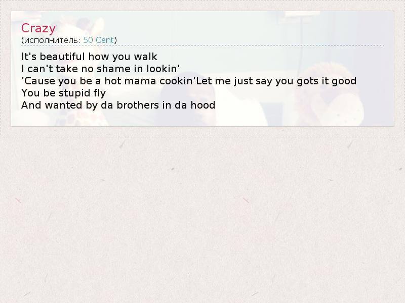 Это интересно:Кёртис Дже́ймс Дже́ксон III (родился 6 июля 1976), больше известный под своим сценическим псевдонимом 50 Cent — американский рэпер. Известность пришла к нему с выпуском альбомов Get Rich or Die Tryin' (англ. Разбогатей или Сдохни) и The Massacre (англ. Резня). 50 Cent добился мультиплатинового успеха с обоими альбомами, продав более 21 миллиона копий по всему миру.Рождённый в районе... продолжение