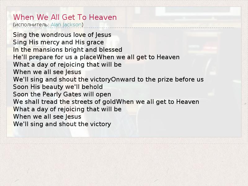 А как ты думаешь, о чем песня "When We All Get To Heaven" ?