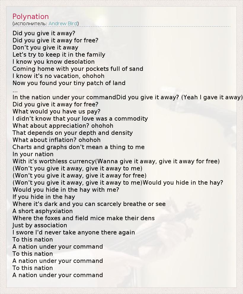 In the nation under your commandDid you give it away? (Yeah I gave it away)