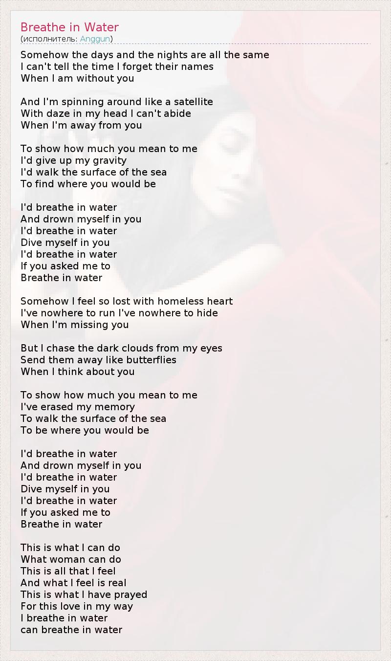 А как ты думаешь, о чем песня "Breathe in Water" ?