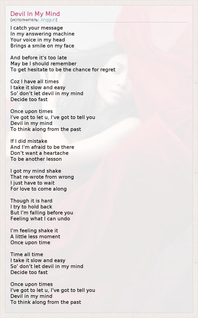 А как ты думаешь, о чем песня "Devil In My Mind" ?