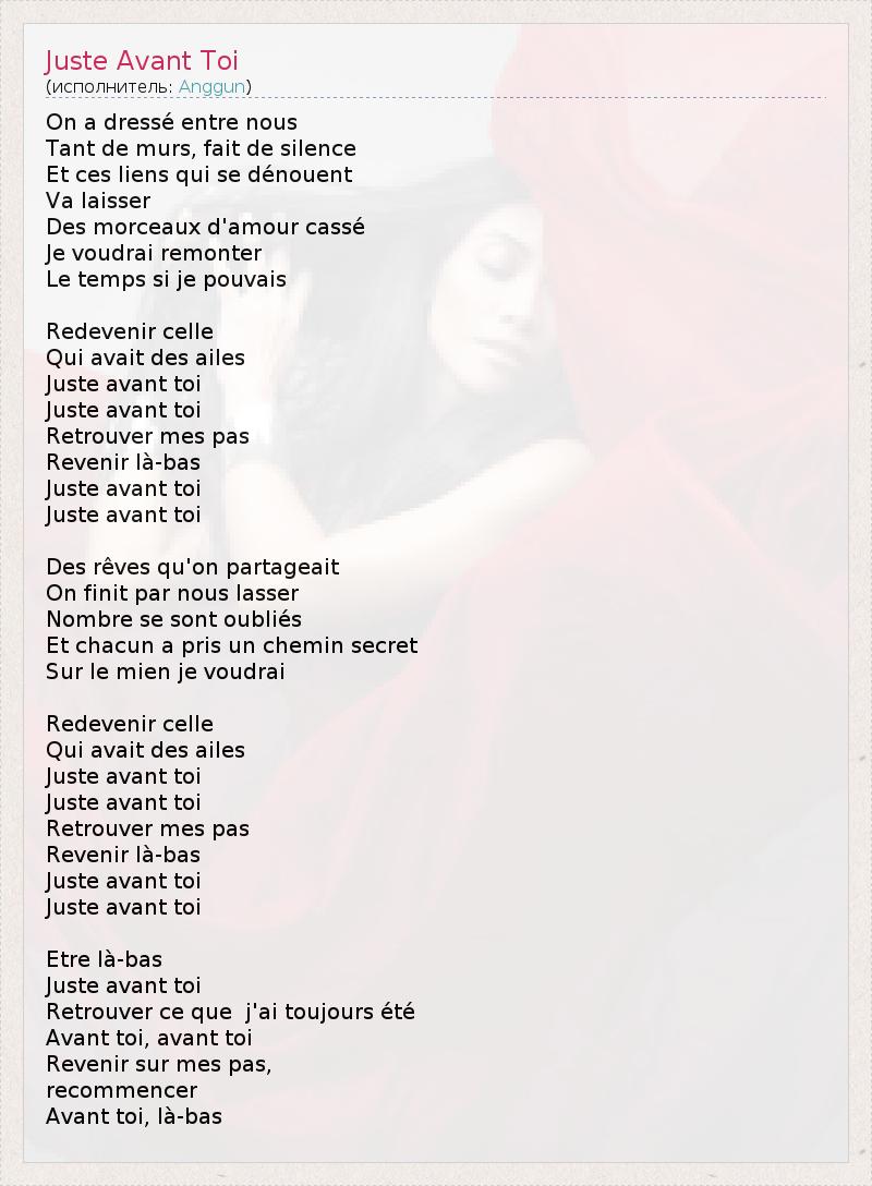 А как ты думаешь, о чем песня "Juste Avant Toi" ?