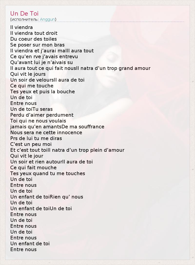 А как ты думаешь, о чем песня "Un De Toi" ?