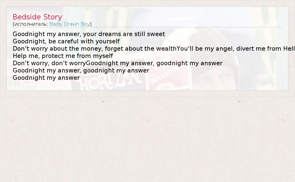 А как ты думаешь, о чем песня "Bedside Story" ?