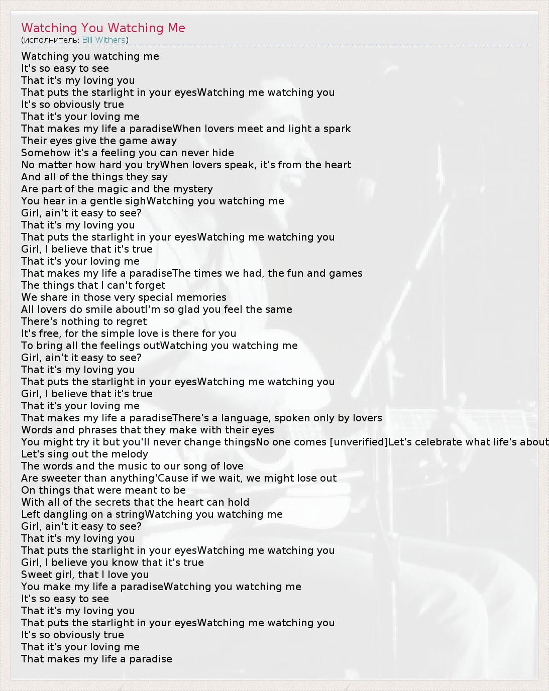 ГлавнаяИсполнителиBill WithersWatching You Watching Me