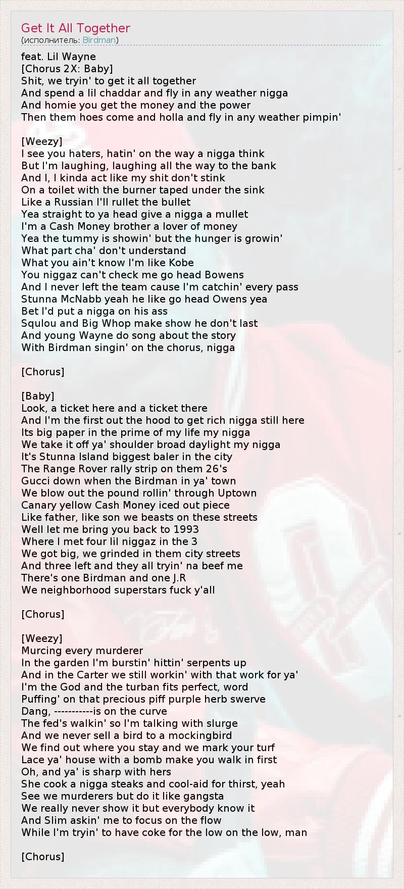 А как ты думаешь, о чем песня "Get It All Together" ?