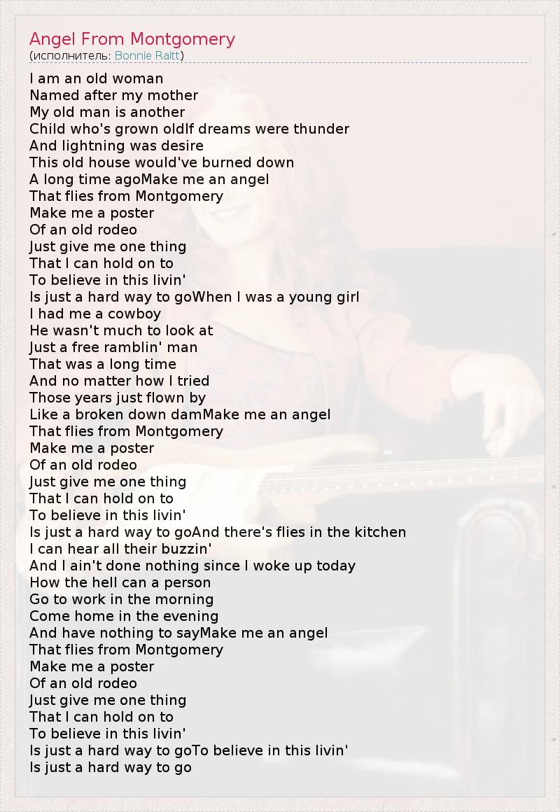 А как ты думаешь, о чем песня "Angel From Montgomery" ?