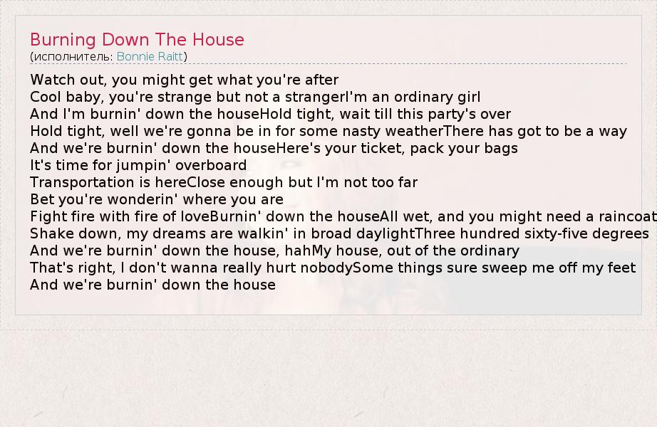 А как ты думаешь, о чем песня "Burning Down The House" ?