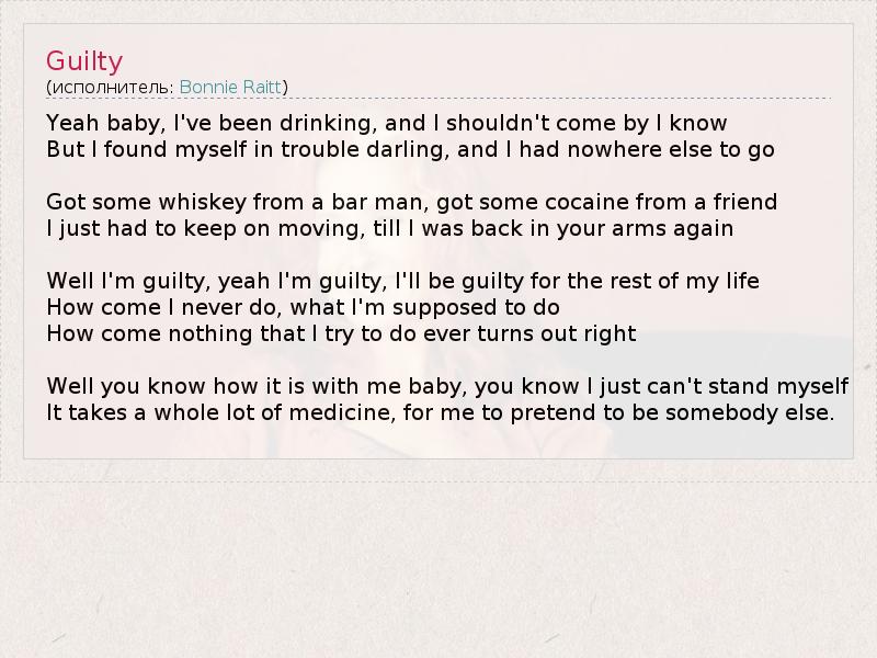 Well I'm guilty, yeah I'm guilty, I'll be guilty for the rest of my life