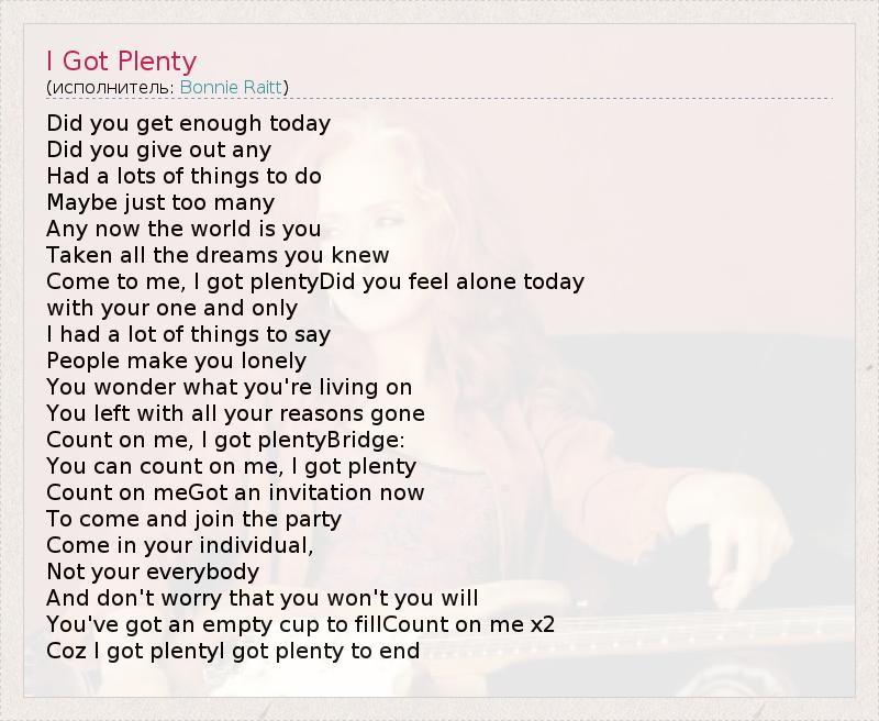 А как ты думаешь, о чем песня "I Got Plenty" ?