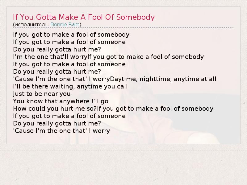 А как ты думаешь, о чем песня "If You Gotta Make A Fool Of Somebody" ?