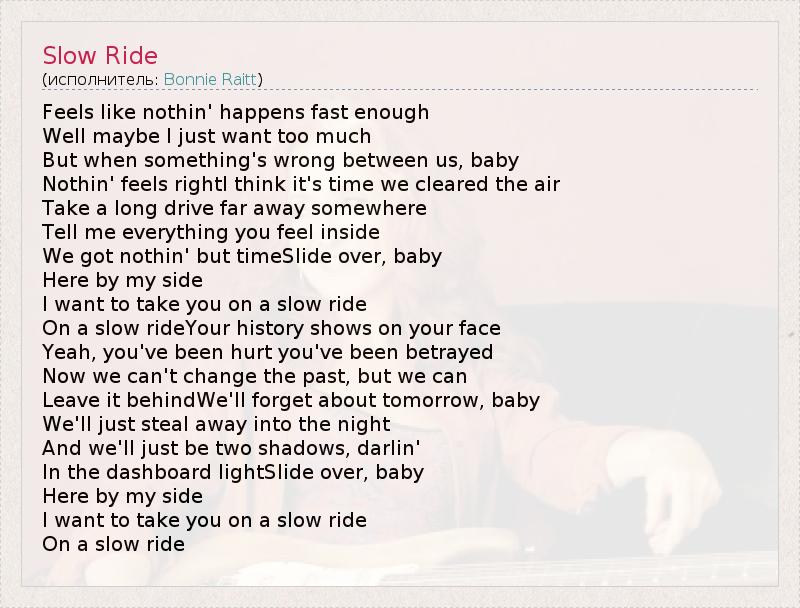 А как ты думаешь, о чем песня "Slow Ride" ?