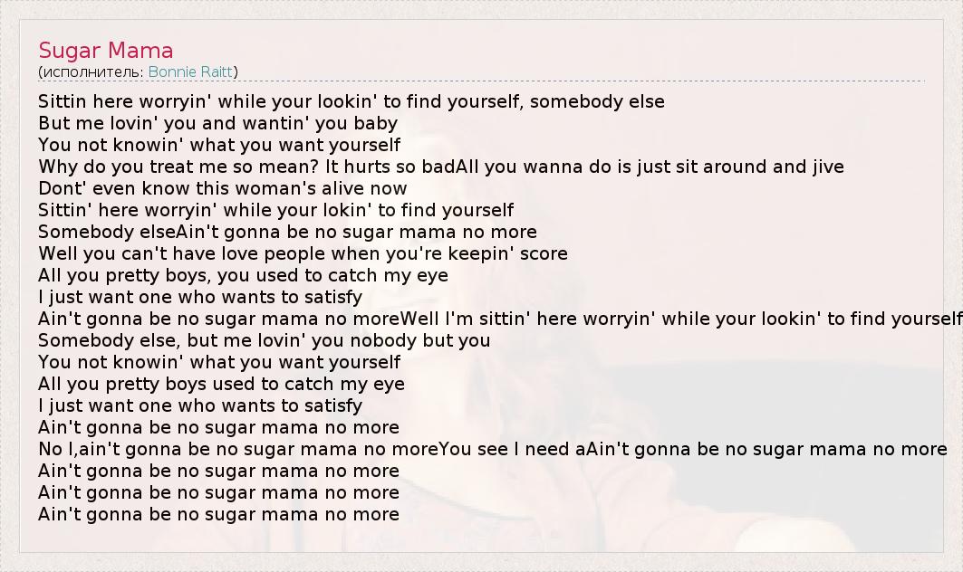 А как ты думаешь, о чем песня "Sugar Mama" ?