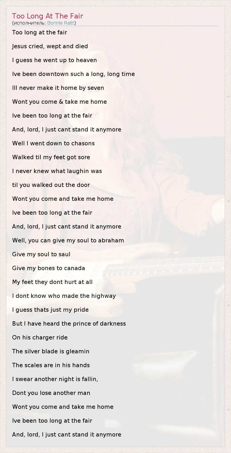 А как ты думаешь, о чем песня "Too Long At The Fair" ?