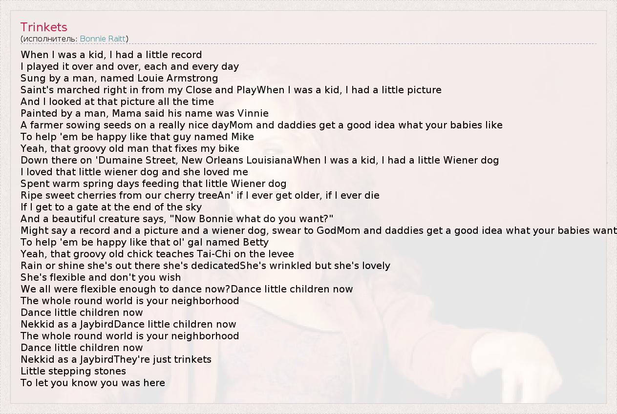 Might say a record and a picture and a wiener dog, swear to GodMom and daddies get a good idea what your babies want