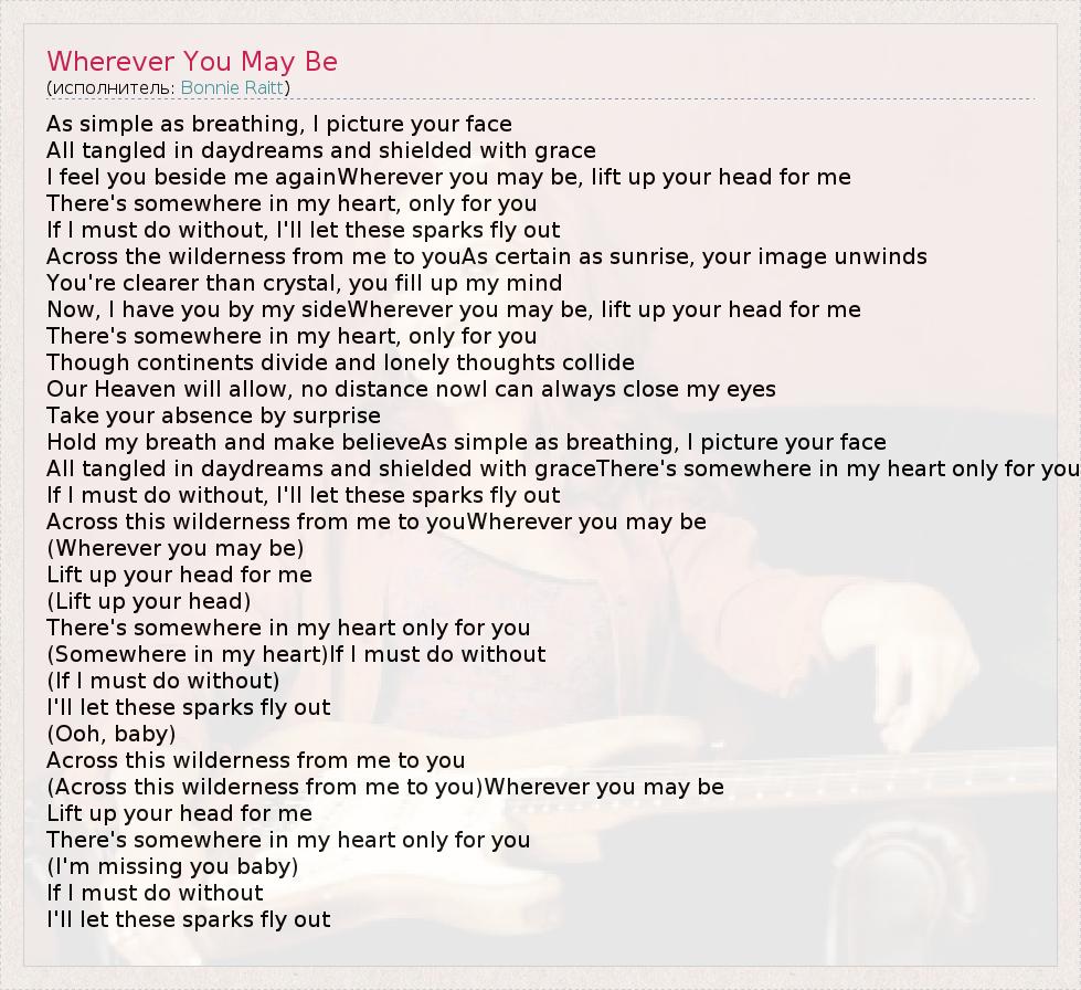 А как ты думаешь, о чем песня "Wherever You May Be" ?
