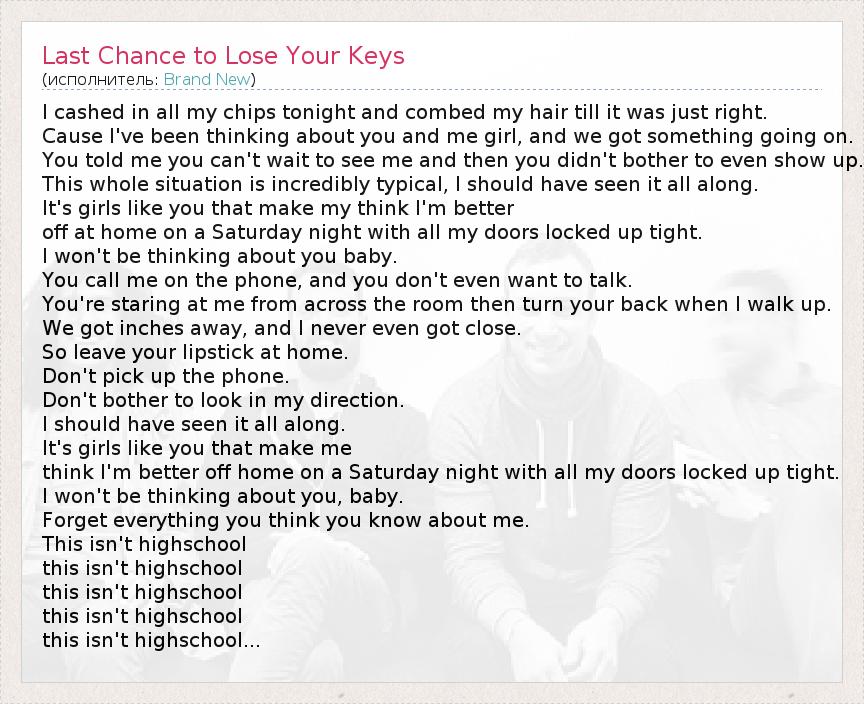 А как ты думаешь, о чем песня "Last Chance to Lose Your Keys" ?