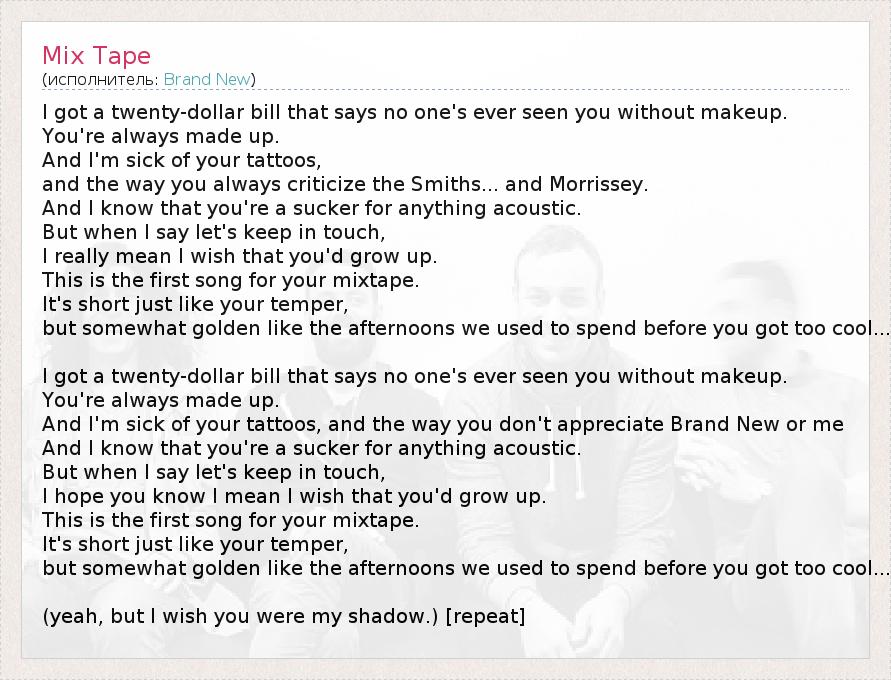 А как ты думаешь, о чем песня "Mix Tape" ?