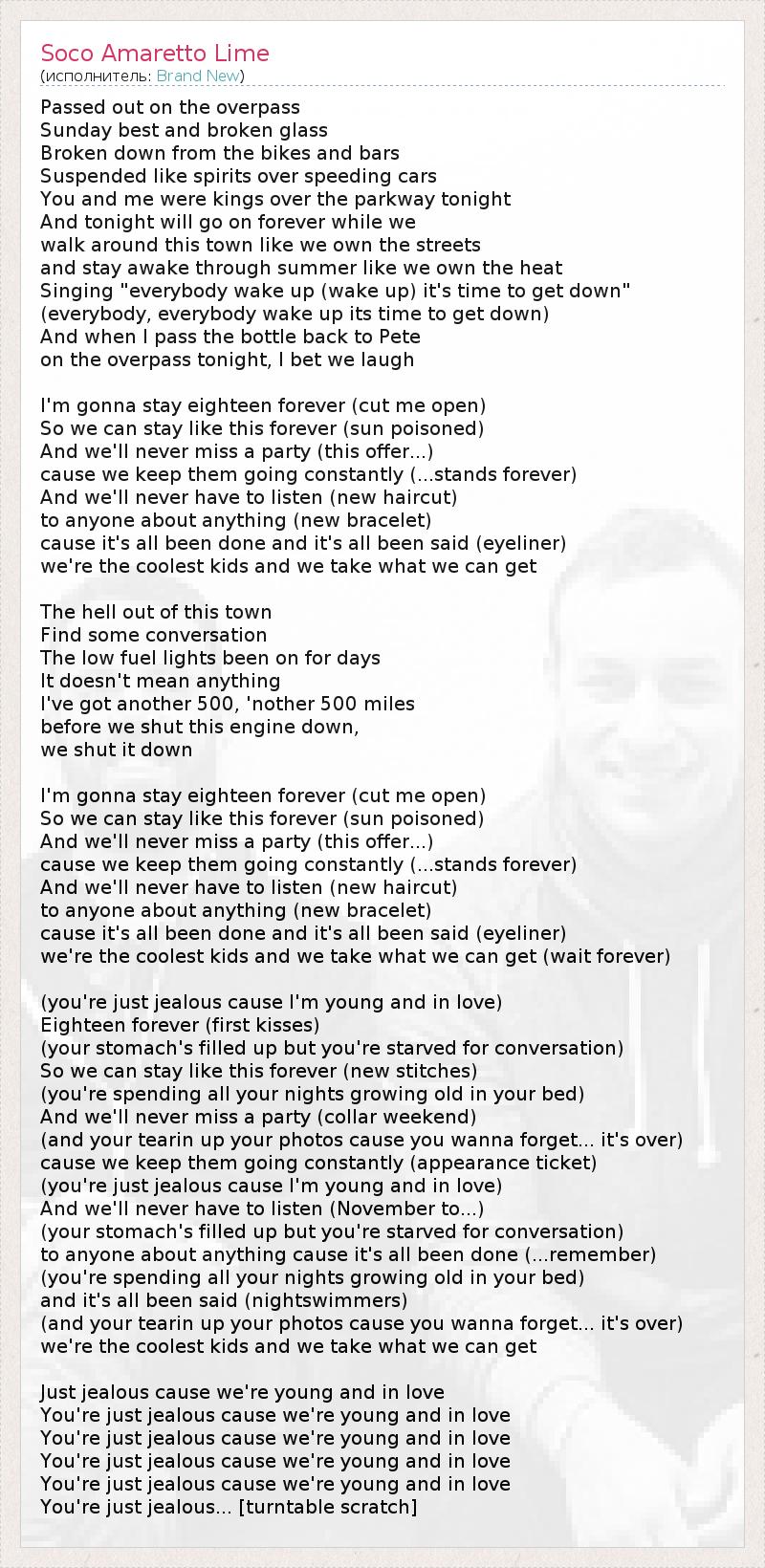 А как ты думаешь, о чем песня "Soco Amaretto Lime" ?