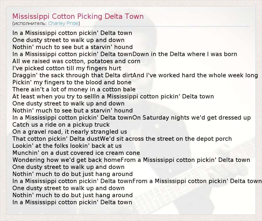 А как ты думаешь, о чем песня "Mississippi Cotton Picking Delta Town" ?