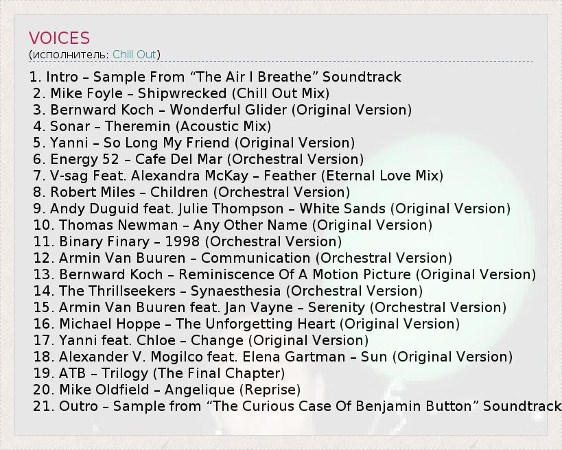 21. Outro – Sample from “The Curious Case Of Benjamin Button” Soundtrack
