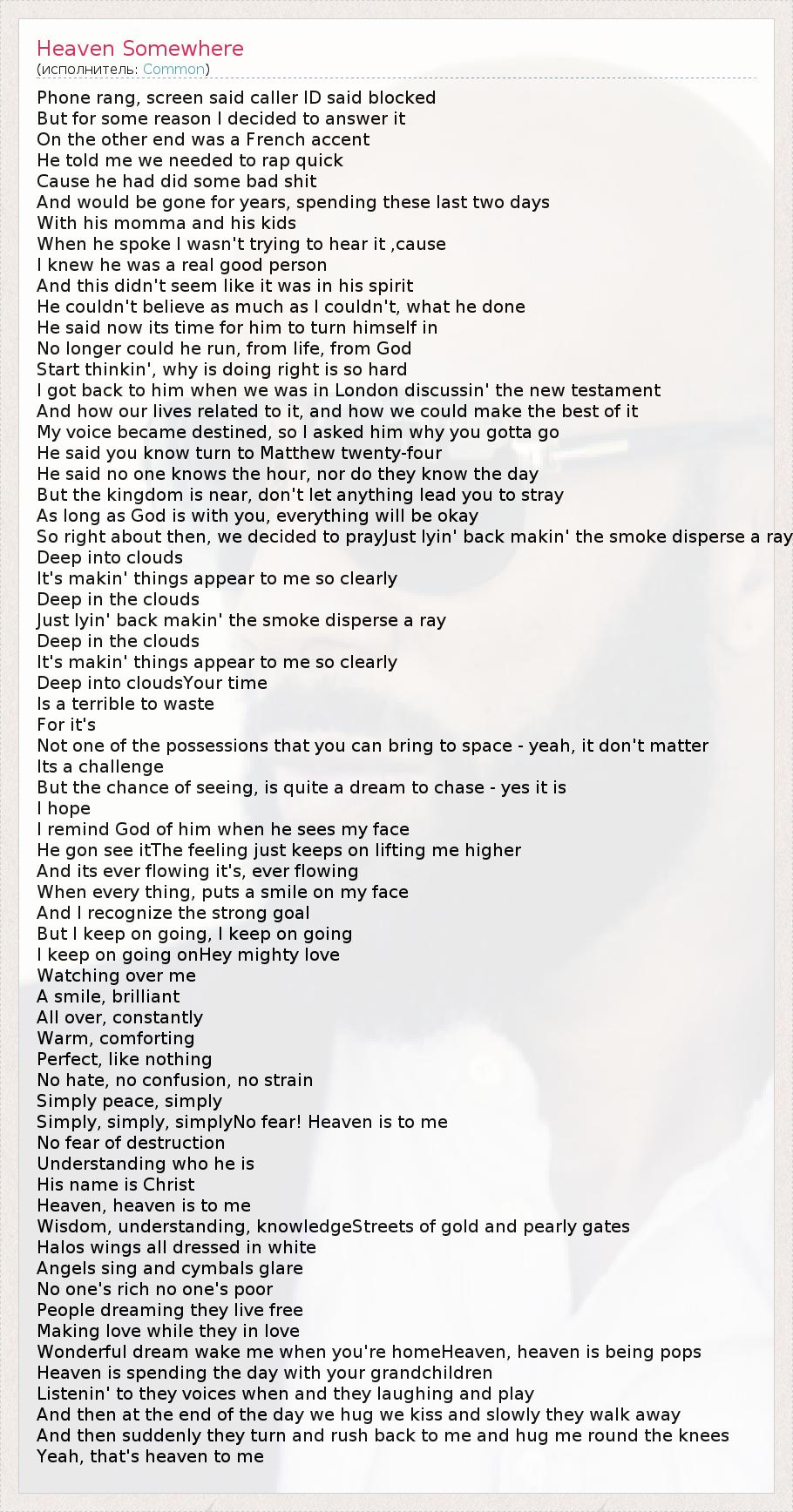 А как ты думаешь, о чем песня "Heaven Somewhere" ?