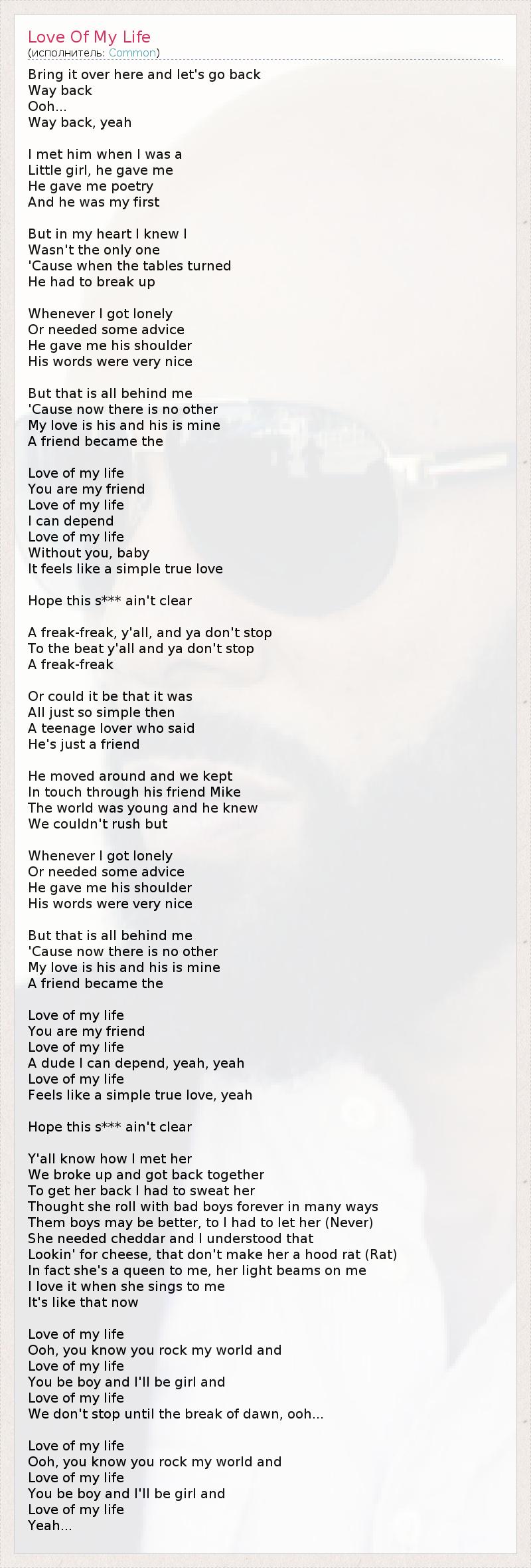 А как ты думаешь, о чем песня "Love Of My Life" ?