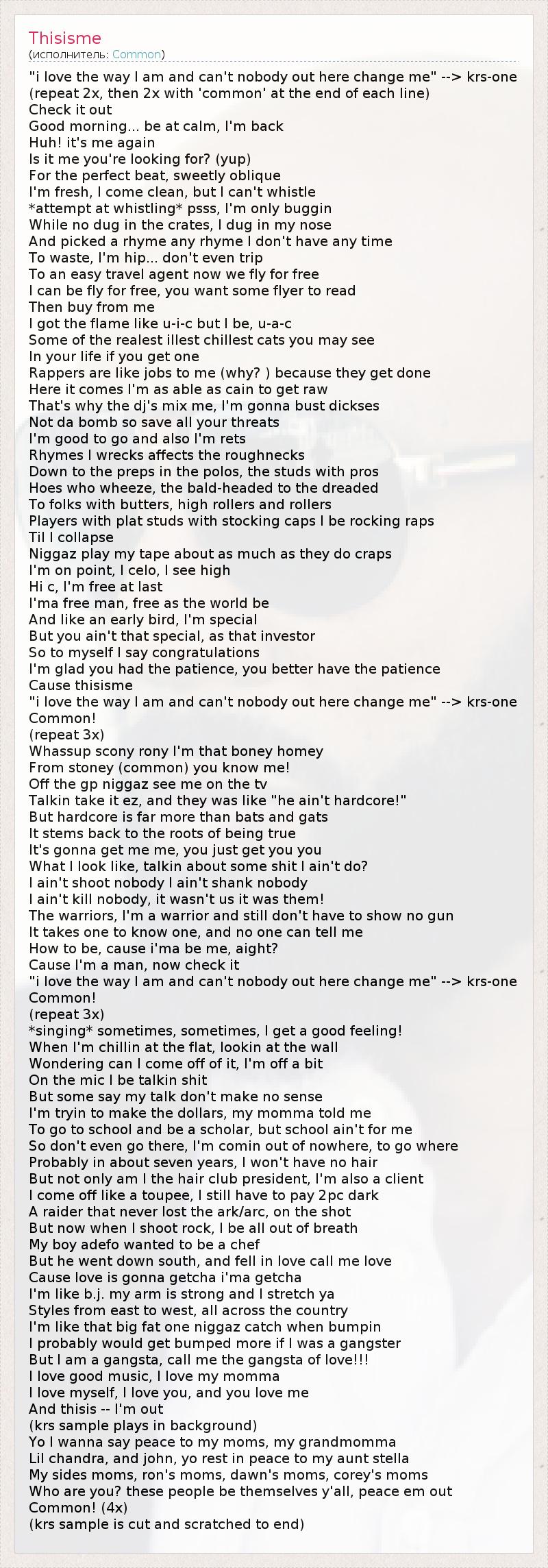"i love the way I am and can't nobody out here change me" --> krs-one