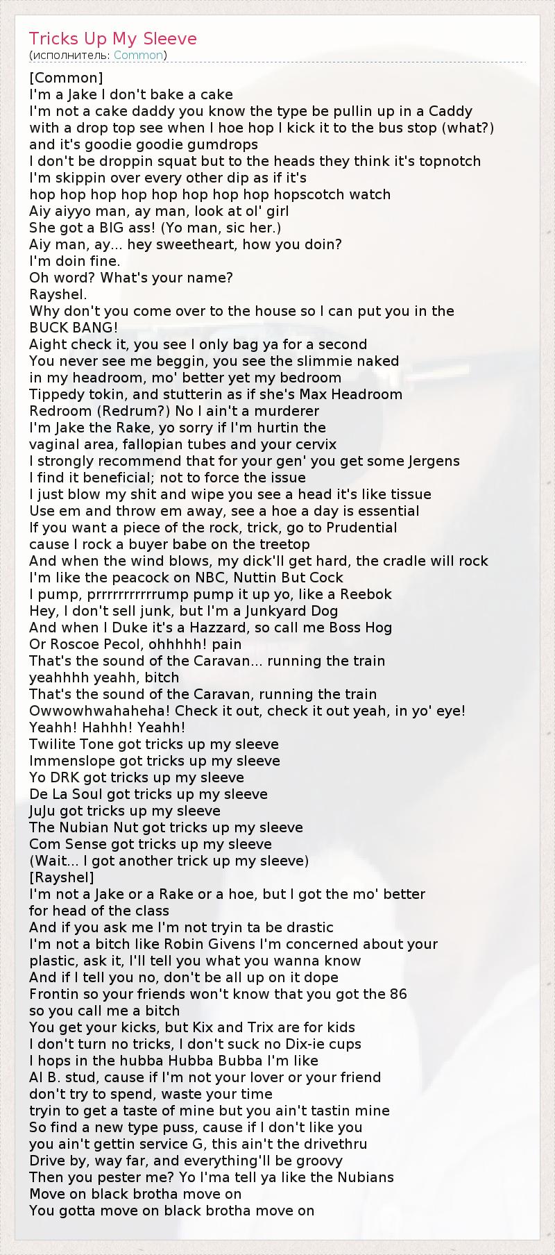 А как ты думаешь, о чем песня "Tricks Up My Sleeve" ?
