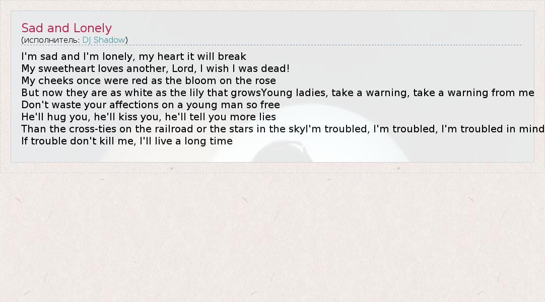 А как ты думаешь, о чем песня "Sad and Lonely" ?